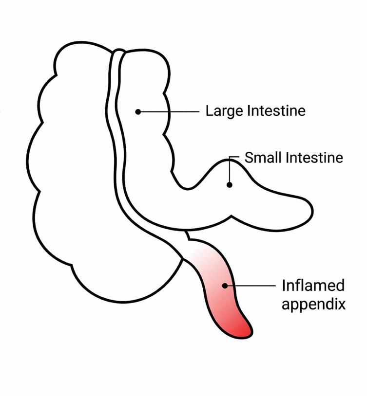 Inflammation of the appendix, typically causing severe right-sided abdominal pain.