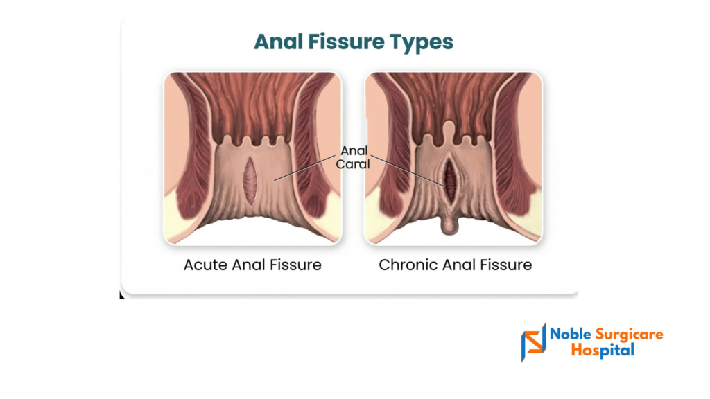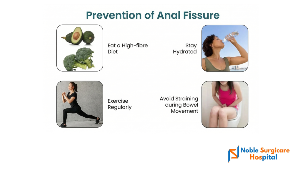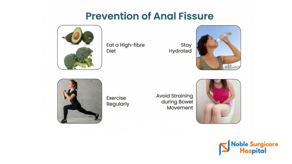 While anal fissures symptoms are common, you can prevent them by consuming high-fibre diets, staying hydrated, and maintaining regular exercise. These activities promote easy defecation, thus avoiding any strain during bowel movements.Surgery is often the last resort if diets and medications fail to work. If you have been recommended for fissure laser surgery, contact Noble surgicare Hospital for smooth and affordable treatment.