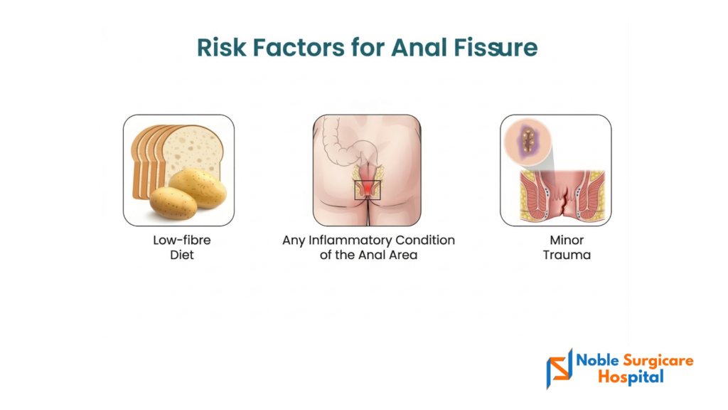 | Risk Factors | History of constipation or hard stools, trauma, low-fibre diet, and previous anal surgery |