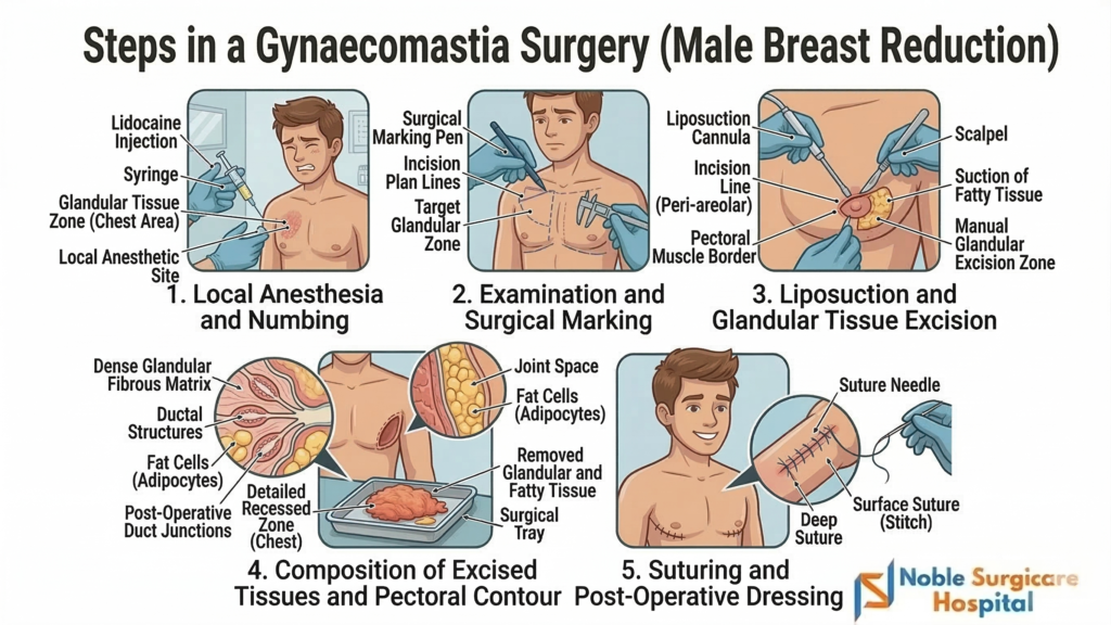 Noble Surgicare Hospital provides expert gynecomastia surgery, ensuring the effective correction of enlarged male breasts. Their skilled surgical team prioritizes patient comfort and natural-looking results throughout every procedure.