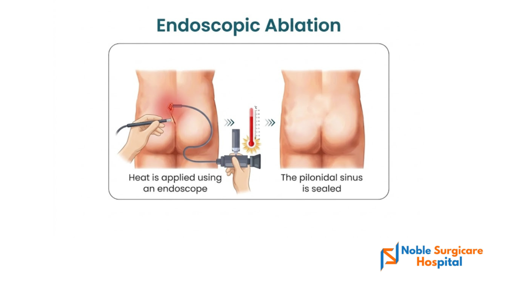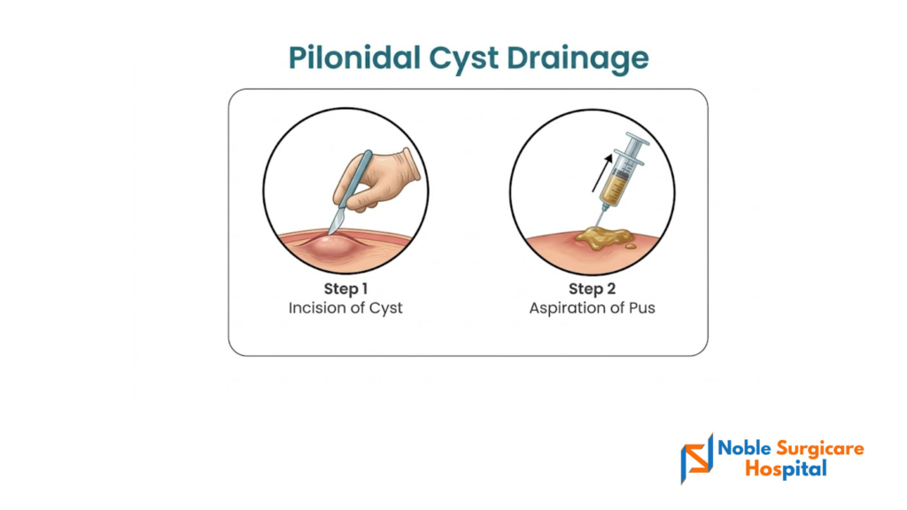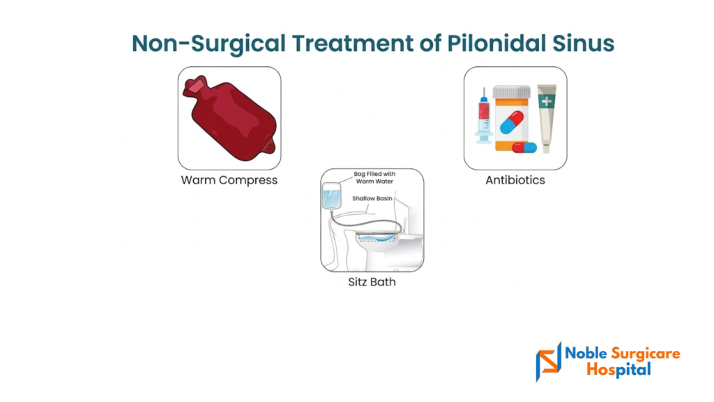 You can get in touch with the experts at Noble surgicare Hospital to know the best non-surgical and surgical treatment options available for pilonidal sinus. We can be your companion from the beginning to the surgical after-care stage.